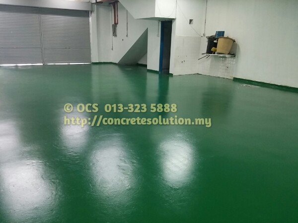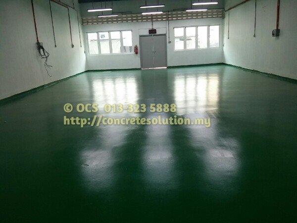 1. new epoxy flooring for factory, warehouse, commercial lot etc. The process include, grind the surface to become smooth, undercoat and top coat of the epoxy flooring. You can select the colour that you like.